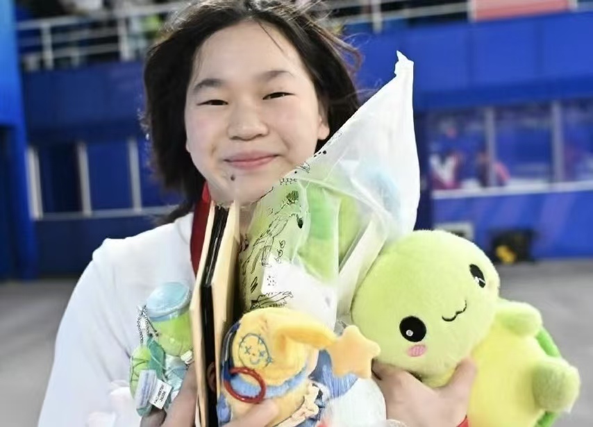 这场突如其来的 “娃娃雨”,没有章法,却满是真诚。它不只是对全红婵和王伟莹夺冠的祝贺,更是观众们对这个跳水小将发自内心的喜欢。在赛场上,全红婵用实力证明了自己,每一次跳跃都凝聚着汗水和努力;而赛场下,这些飞来的娃娃、热烈的掌声,都是对她最好的回馈。