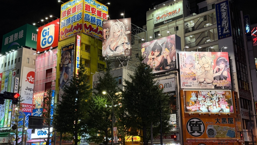 东京秋叶原距离TGS举办地千叶幕张展览馆40分钟车程,夜幕降临后这里霓虹闪烁、车水马龙,这里是许多游戏玩家在展会结束后的“下一站”。